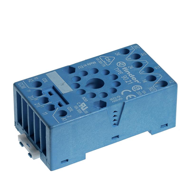 Розетка с винт. клеммами (с зажимной клетью) для реле 60.13 таймера 88.02 модули 99.01 в комплекте металлич. клипса 090.33 син. FINDER 9021SMA