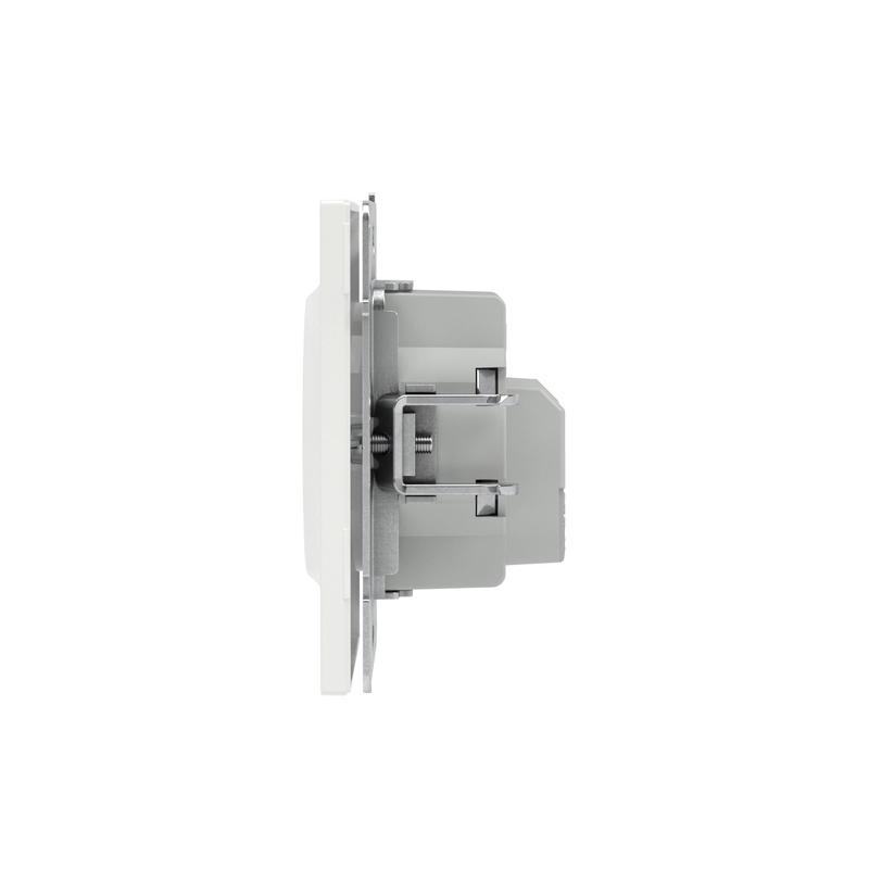Розетка 2P+E (однофазная розетка с заземлением) без шторок применяется для подключения бытовых электроприборов. Предназначена для скрытого монтажа в стену. Характеристики устройства: номинальное напряжение 250 В, номинальный ток 16 А. Материал: металл, поликарбонат. Пластиковые элементы имеют цвет "Белая магнолия". Для декоративного оформления электроустановочных изделий используются рамки серии "KANT".