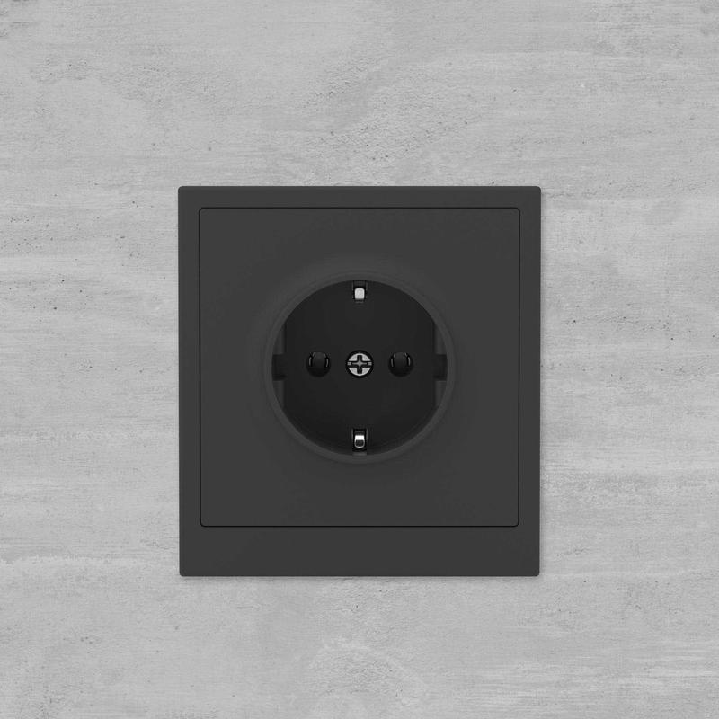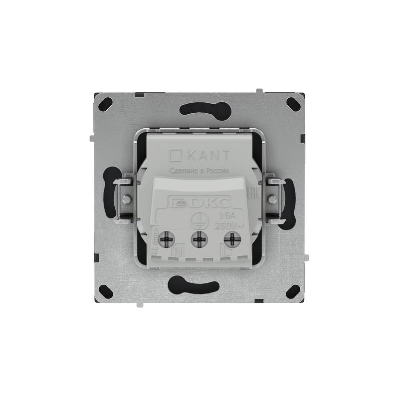 Розетка 2P+E (однофазная розетка с заземлением) без шторок применяется для подключения бытовых электроприборов. Предназначена для скрытого монтажа в стену. Характеристики устройства: номинальное напряжение 250 В, номинальный ток 16 А. Материал: металл, поликарбонат. Пластиковые элементы имеют цвет "Черный уголь". Для декоративного оформления электроустановочных изделий используются рамки серии "KANT".