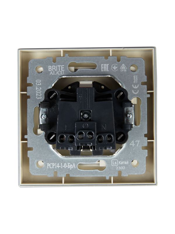 Розетка СП BRITE РСР14-1-0-БрА 16А в сборе с заземл. защ. шторки алюм. IEK BR-R14-16-K47-F -
