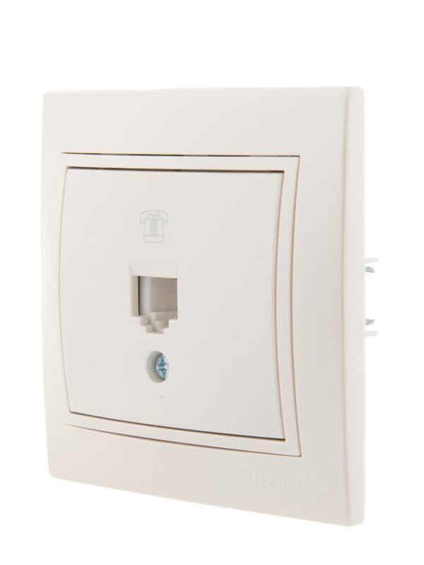 Розетка телефонная 1-м СП Mira RJ11 16А IP20 евро стандарт со вставкой жемчуж./бел. перламутр. LEZARD 701-3030-137 -