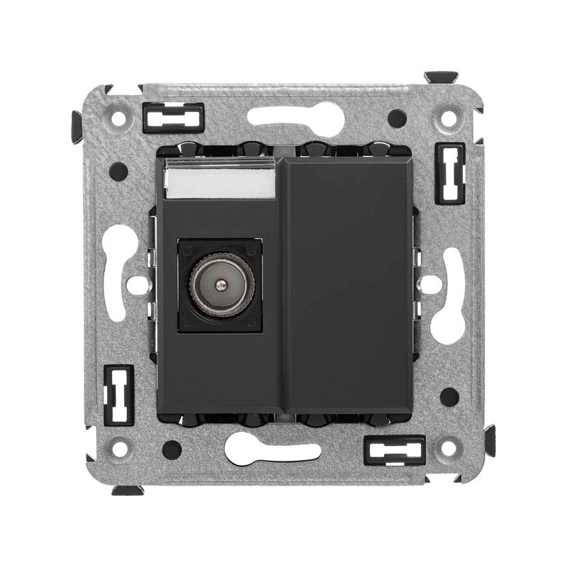 Одиночные телевизионные розетки предназначены для скрытой установки в стенах и применяются для подключения телевизионного кабеля. TV-розетки производства ДКС рассчитаны на частоту до 2400 Гц. Материал – металл, пластик. Пластиковые части устройства имеют цвет "Черный матовый" – таинственный, темный и глубокий оттенок, который хорошо сочетается с любыми цветами и фактурами.