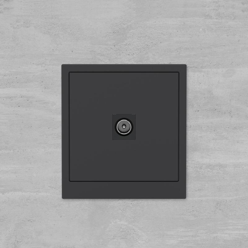 Одиночные телевизионные розетки применяются для подключения телевизионного кабеля. Рассчитаны на частоту до 2400 Гц. Материал: металл, поликарбонат. Пластиковые элементы имеют цвет "Черный уголь". Для декоративного оформления электроустановочных изделий используются рамки серии "KANT".