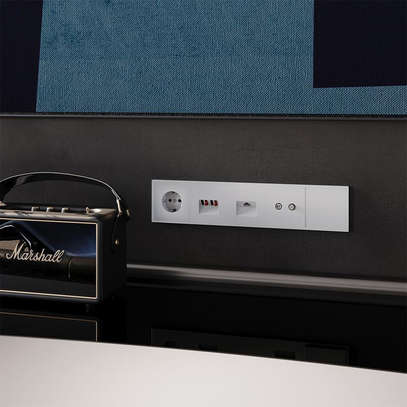 Место установки. Телевизионные розетки актуальны везде, где требуется передача сигнала на телевизор посредством кабельного или спутникового подключения. Корпус. TV+SAT розетка «прячет» внутри стены неприглядный провод и упрощает подключение телевизора. Внешний вид — лаконичный, без лишних деталей. Корпус выполнен из термостойкого поликарбоната. Конструктивные особенности. Телевизионная розетка позволяет одновременно подключить ТВ к кабельному (TV) и спутниковому (SAT) сигналам. Возможно объединение в одной рамке нескольких типов розеток: например, телевизионной для передачи сигнала и обычной для питания телевизора.