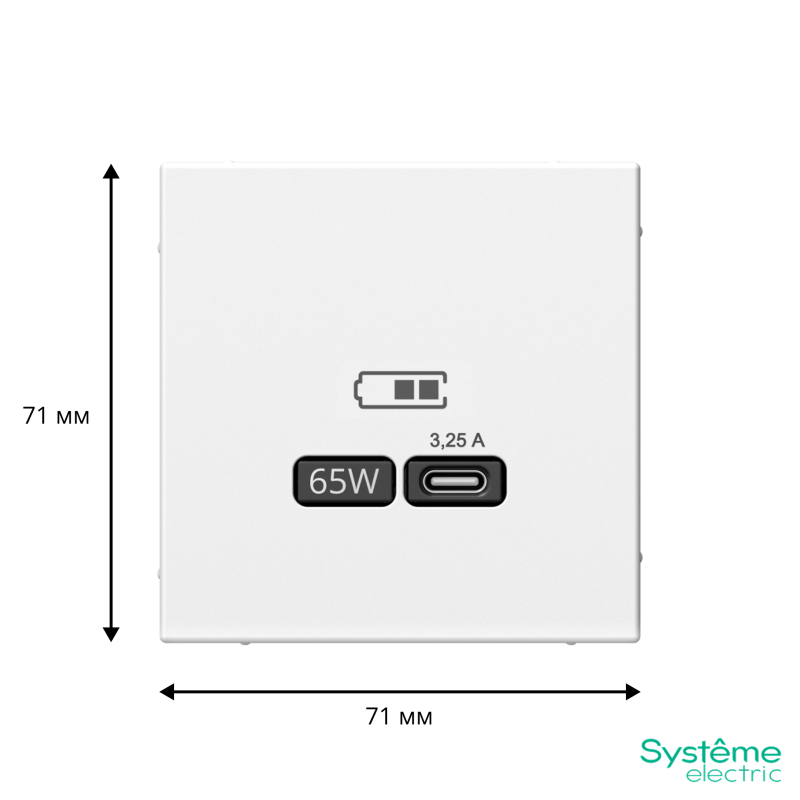 Розетка Systeme Electric серии ArtGallery в цвете белый USB с разъемом типа C высокоскоростная.
