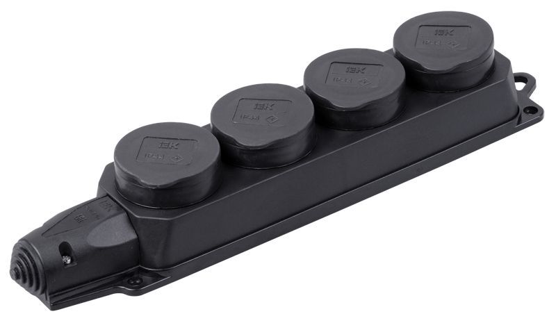 Розетка (колодка) 4-м Омега РБ34-1-0м с защ. крышкой IP44 каучук IEK PKR64-016-2-K02