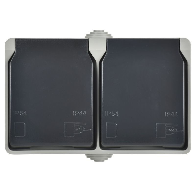 Розетка 2-м ОП Форс РСб22-3-ФСр с защ. крышкой с заземл. IP54 ИЭК ERS22-K03-16-54-DC -