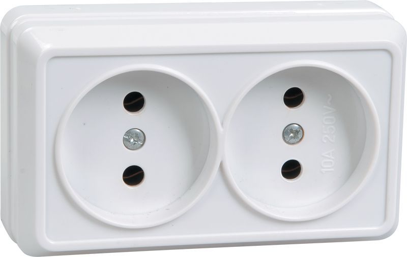Розетка 2-м ОП Октава 10А IP20 без заземл. бел. ИЭК ERO20-K01-10-DC