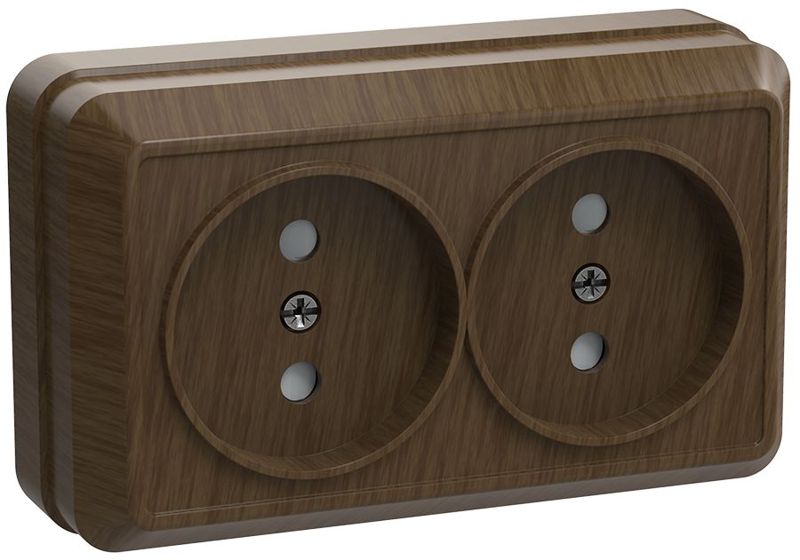 Розетка 2-м ОП Октава 10А IP20 без заземл. дуб ИЭК ERO20-K04-10-DC