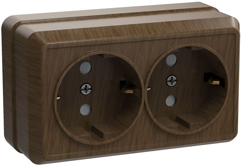 Розетка 2-м ОП Октава 16А РС22-3-ОД с заземл. дуб ИЭК ERO21-K04-16-DC