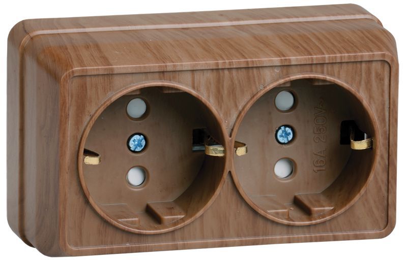 Розетка 2-м ОП Октава 16А РСш22-3-ОД защ. шторки с заземл. дуб ИЭК ERO24-K04-16-DC