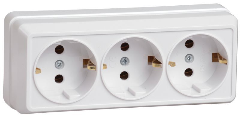Розетка 3-м ОП Октава 16А РС23-3-ОБ с заземл. бел. ИЭК ERO31-K01-16-DC -