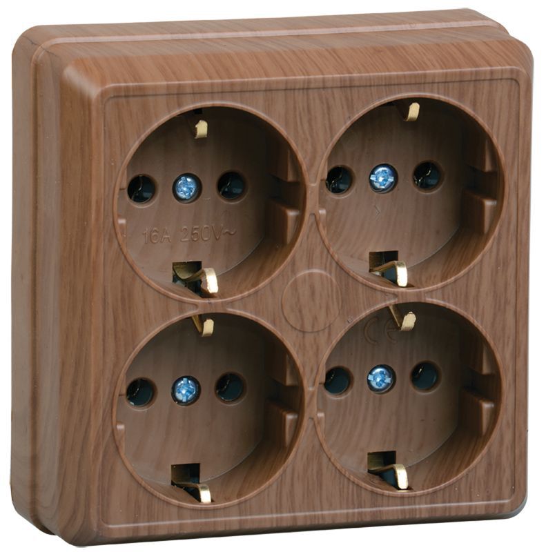 Розетка 4-м ОП Октава 16А РС24-3-ОД с заземл. дуб ИЭК ERO41-K04-16-DC