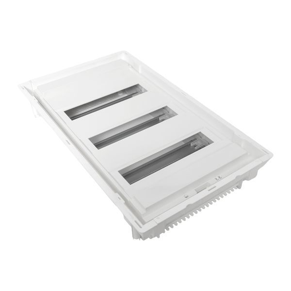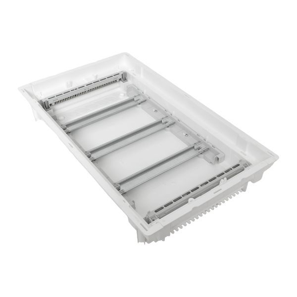 Корпуса пластиковые серии «Nova» предназначены для сборки силовых, слаботочных и комбинированных щитов. На DIN-рейки устанавливается модульное оборудование. На монтажные платы – антенные разветвители, Wi-Fi роутеры, патч-панели и иное слаботочное оборудование. Щиты устанавливаются как в бетонные и кирпичные стены, так и в гипсокартон, монтажные комплекты для установки в гипсокартон входят в комплектацию оснований щитов либо в комплектацию щитов в сборе. Двери щитов можно выбрать их разных материалов – пластик, металл или металл с перфорацией. Также доступны дополнительные аксессуары, необходимые для установки мультимедийного оборудования и существенно упрощающих монтаж щитов. Есть возможность приобрести как отдельно основание щита и дверь, так и основание с дверью в комплекте в одной коробке. Основные преимущества: съемные шасси с din-рейками, съемные кабельные фланцы, гребенка для фиксации входящих проводников, регулировка дверей по глубине, современный минималистичный дизайн.