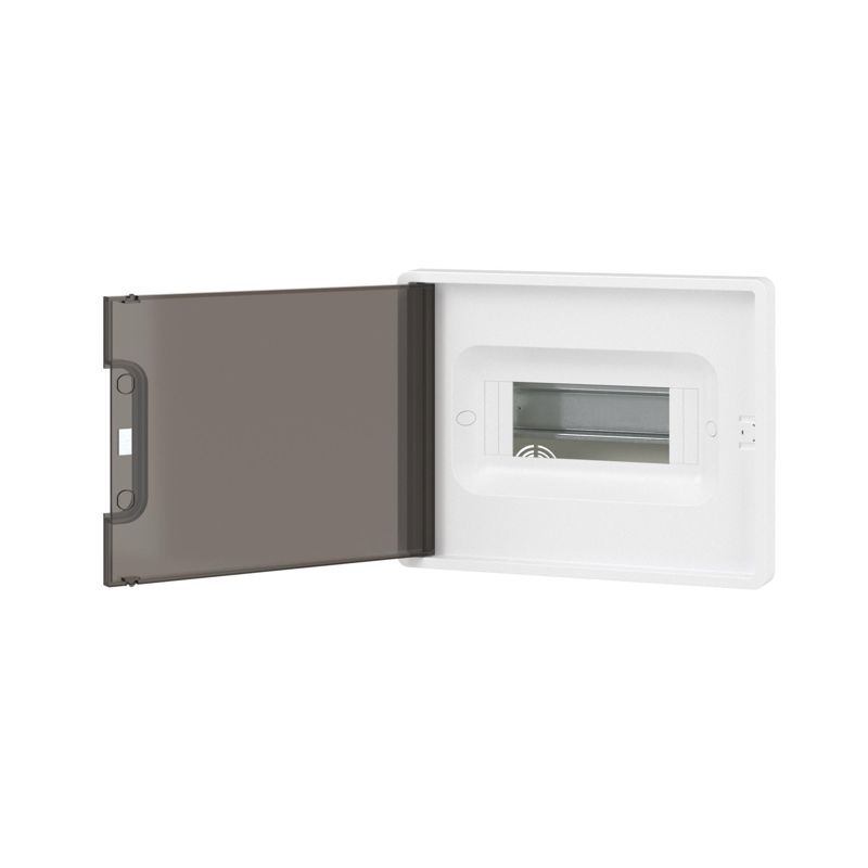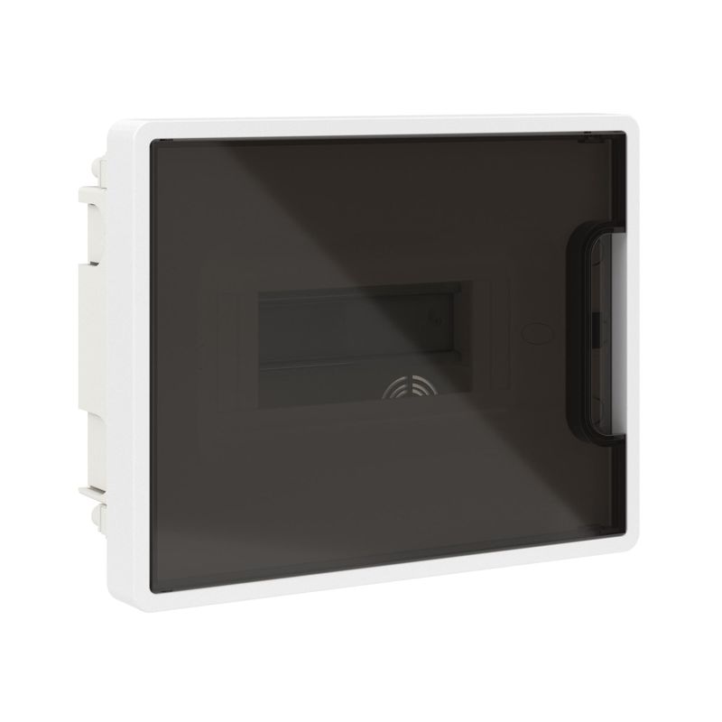 Щиток встраиваемый 8мод. IP41 с тонированной дверцей с 2 шинами PEN на 6 и 8 отверст. бел. DKC F08B1WD