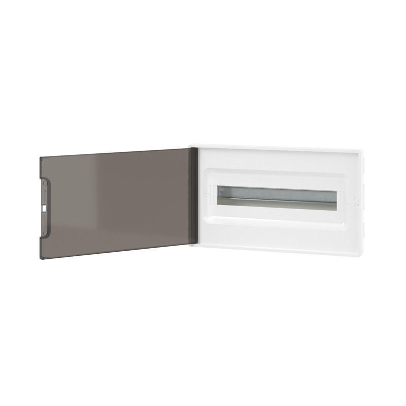 Щиток встраиваемый FRAME 18мод с тонированной дверцей с 2 шинами PEN на 8 и 10 отверст. бел. DKC F18B1WD