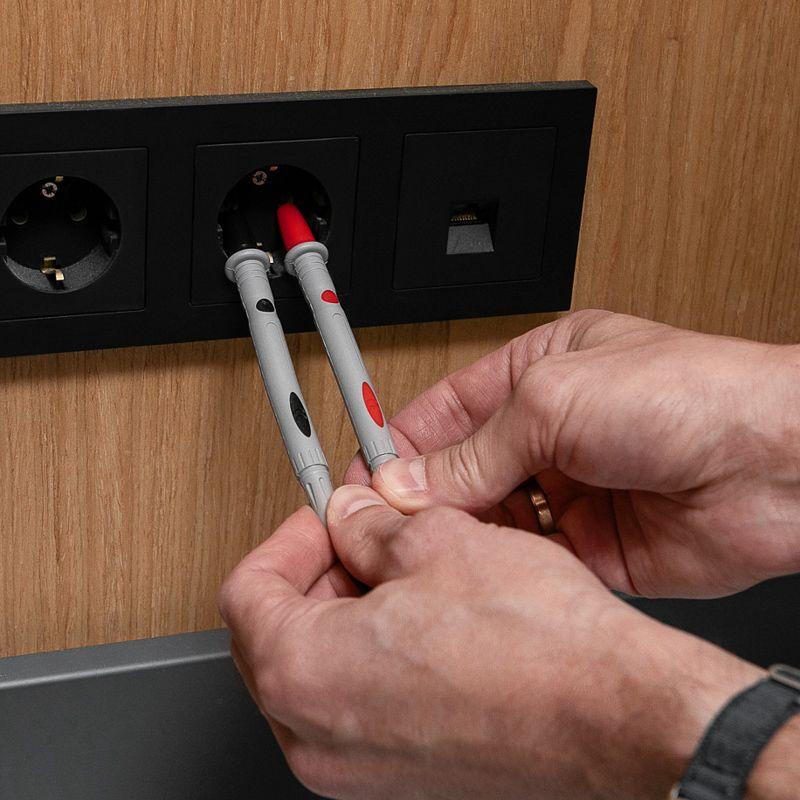 Высококачественные щупы REX05 REXANT для измерительных приборов и токовых клещей. Они подсоединяются к гнездам мультиметра, для удобства имеют разные цвета - черный и красный. Как правило, черный щуп подключается на общее гнездо, а красный — на гнездо '+'. Клеммы, провода и ручки щупов надежно изолированы для защиты пользователя от поражения электрическим током. Для удобства работы металлические концы щупов заострены. Имеют в комплекте поставки защитные изолирующие колпачки для жал, что увеличивает удобство и безопасность работы и при хранении. Подходят для приборов с длинным посадочным гнездом, например приборов серий M890*, M266*, MS200*, MY6*, MS826*, UT5* UT6*, UT7*