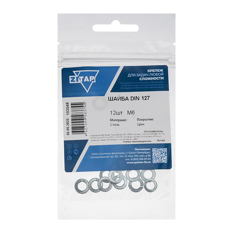 Шайба пружинная М6 цинк. DIN 127 (уп.12шт) пакет Tech-Krep 103048