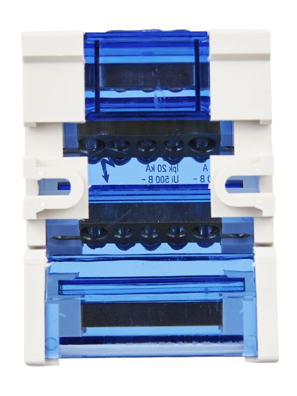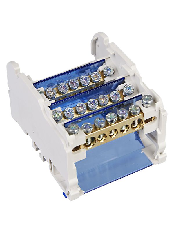 Шины выполнены из высококачественной латуни, изолирующая задняя панель и прозрачная защитная крышка выполнены из самозатухающего пластика.