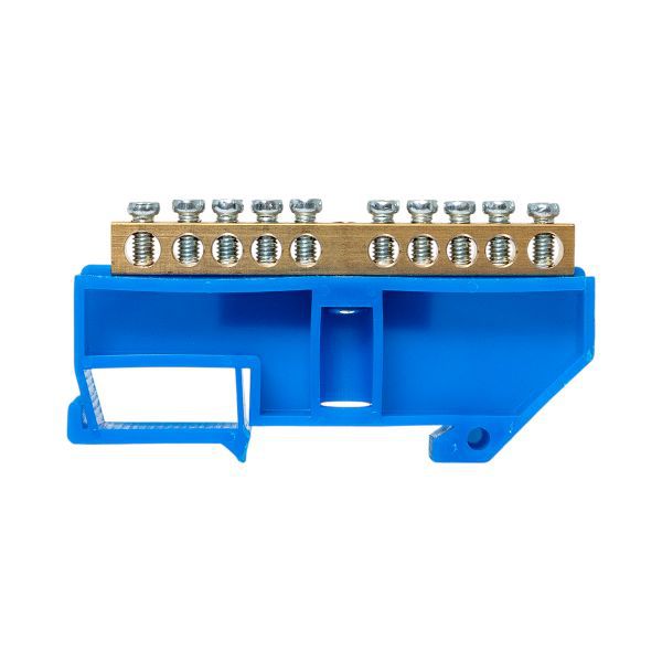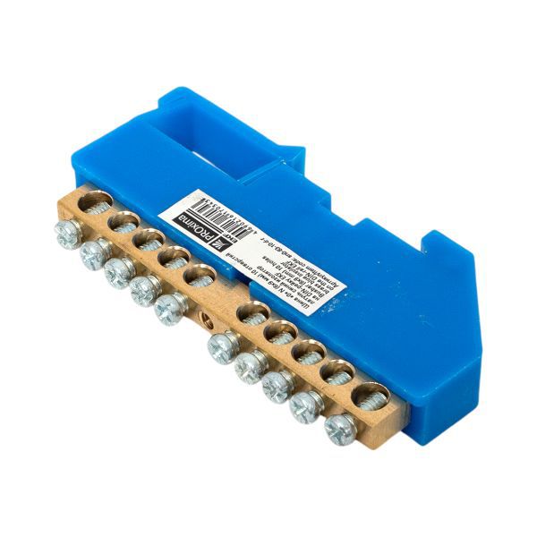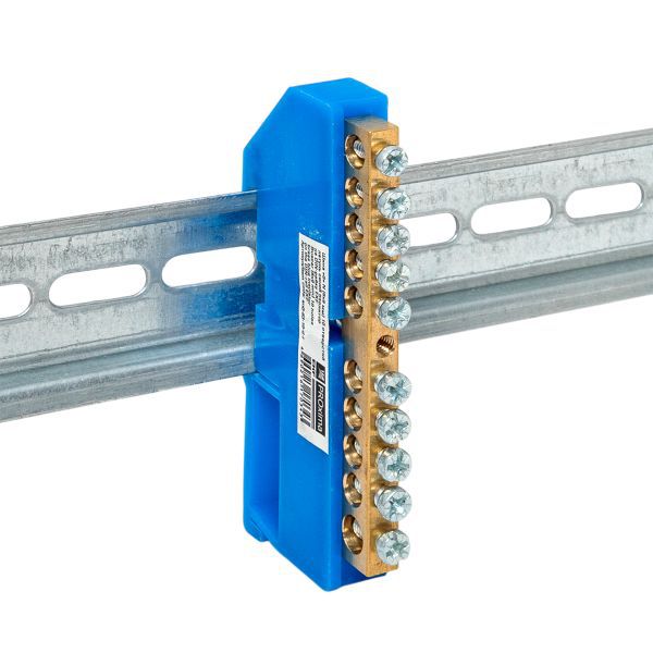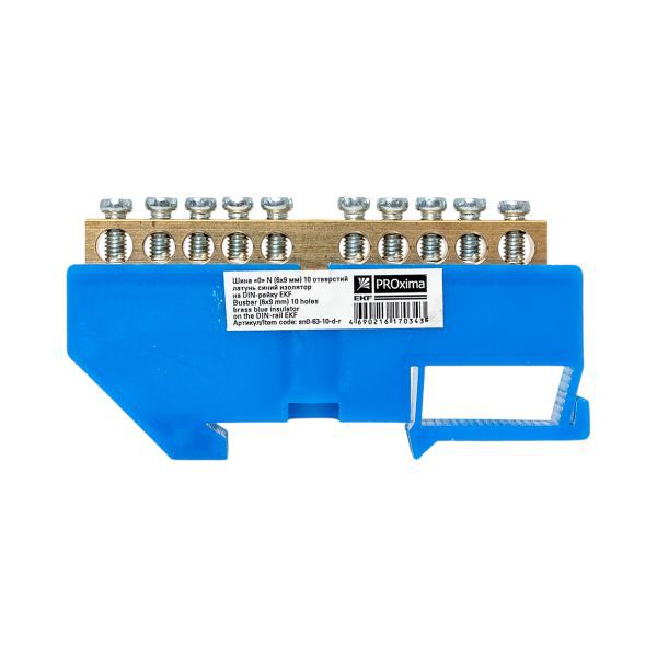 Шина нулевая N 6х9 10 отверстий синий изолятор на DIN-рейку латунь розн. стикер PROxima EKF sn0-63-10-d-r