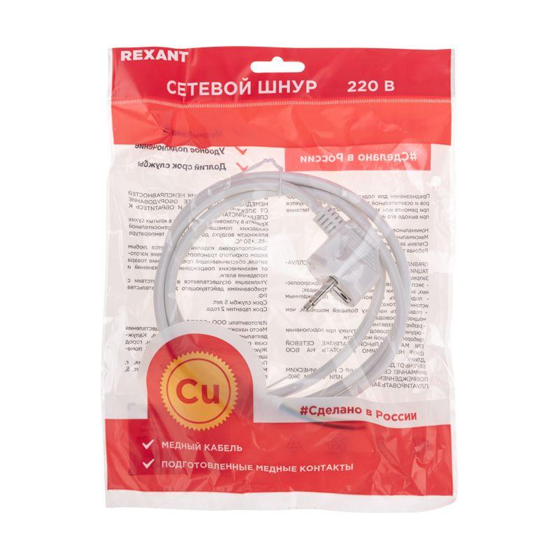Шнур электрический с угловой вилкой 10А 2300Вт ПВС 3х0.75кв.мм 1.5м бел. Rexant 11-1312