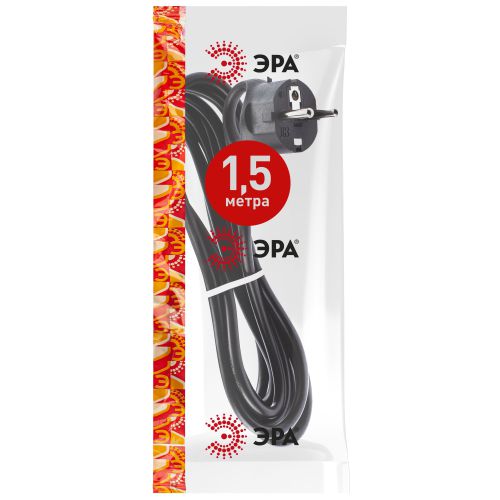 Шнур сетевой с вилкой 1.5м с заземл. ПВС 3х0.75 черн. UX-3x0.75-1.5m-B ЭРА Б0048689