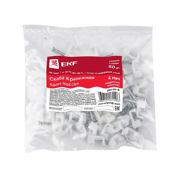 Скоба крепежная квадратная плоская 4мм (уп.50шт) EKF plcn-ss-4