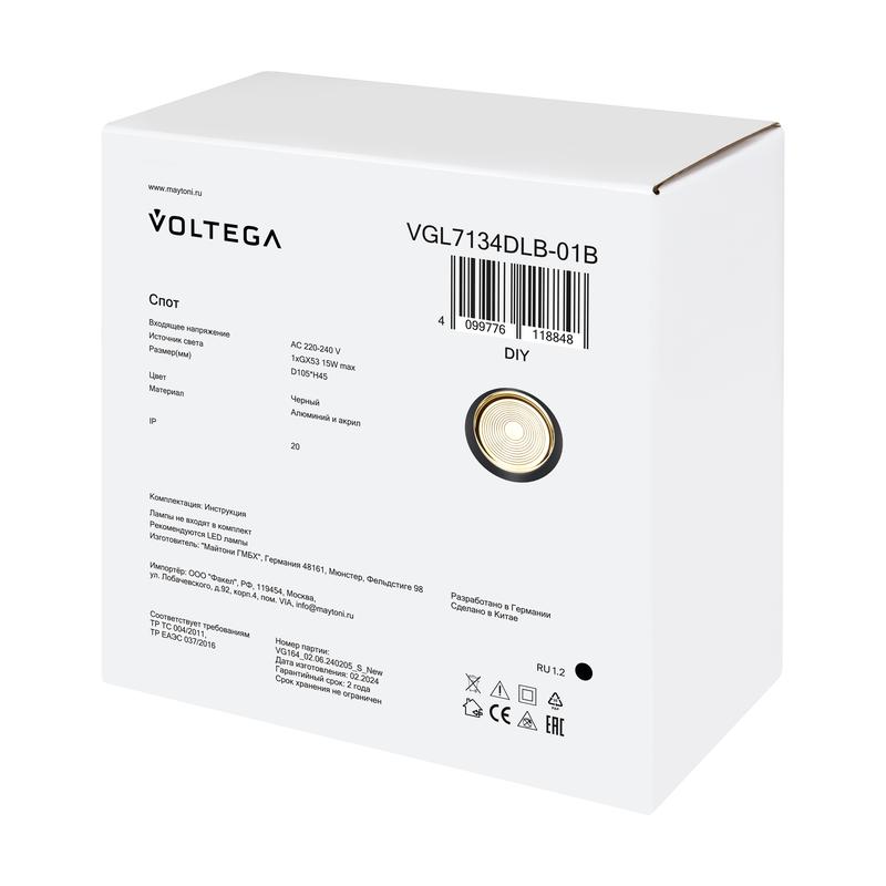 Спот Zoro GX53х1 15Вт IP20 Voltega VGL7134DLB-01B
