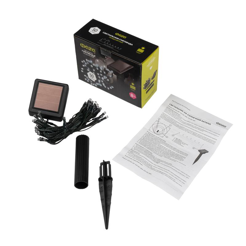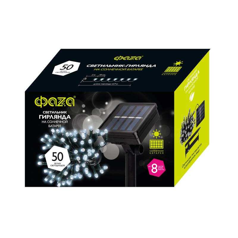 Светильник светодиодный садовый SLR-G01-50W гирлянда 50 бел. LED на солнечн. батарее ФАZА 5027282 -
