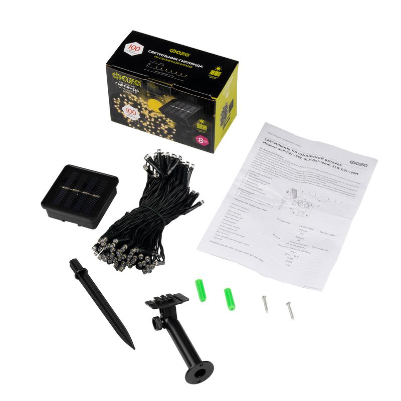 Светильник светодиодный садовый SLR-G01-100Y гирлянда 100 бел. LED на солнечн. батарее ФАZА 5027312