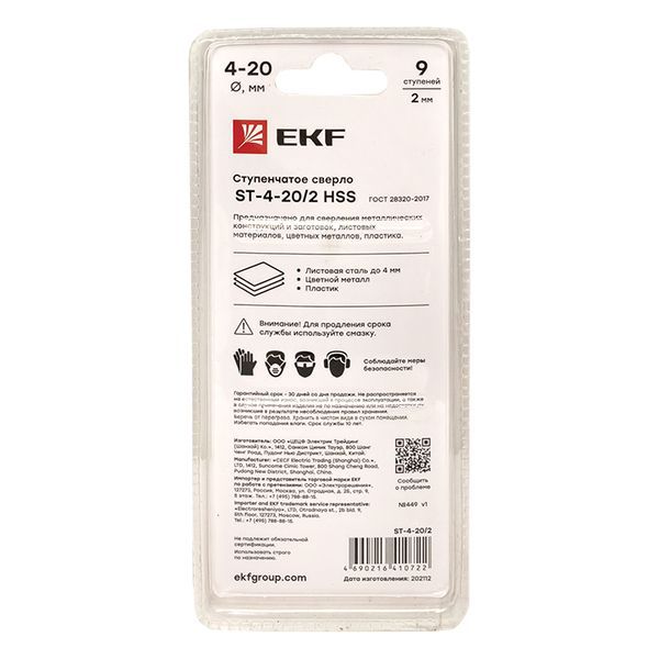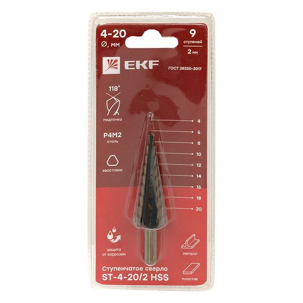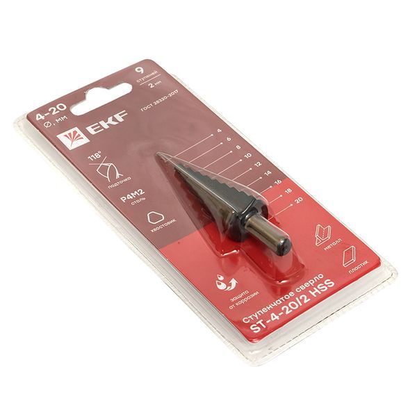 Сверло ступенчатое ST-4-20/2 HSS 9 ступ. EKF ST-4-20/2 -