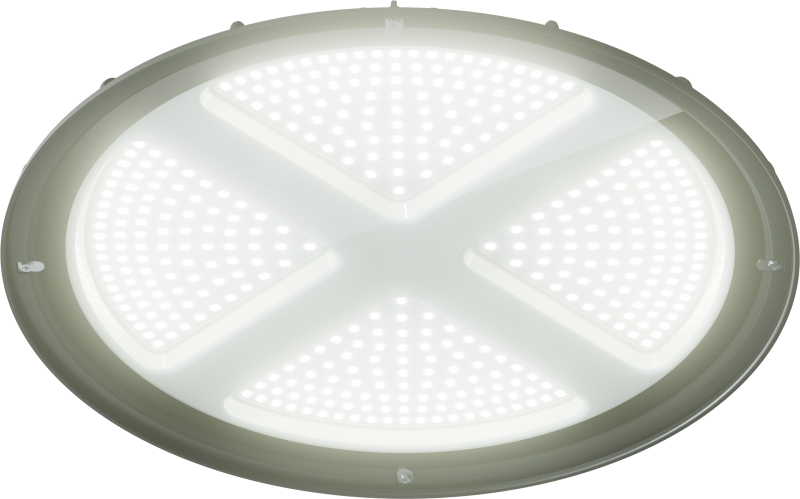 Интегрированный в корпус драйвер с высоким КПД обеспечивает стабильную работу в широком диапазоне входных напряжений 140–264 В и отсутствие пульсаций