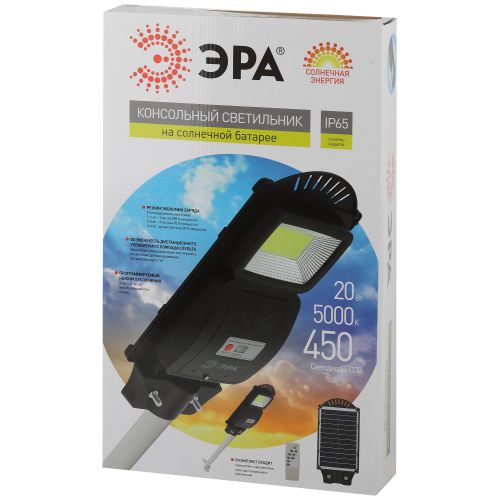Светильник 20Вт 5000К IP65 450лм консольный на солнечной батарее COB с датчиком движения ПДУ Эра Б0046791