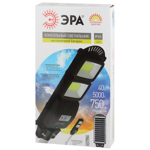 Светильник 40Вт 5000К IP66 750лм консольный на солнечной батарее COB с кронштейном с датчиком движения ПДУ Эра Б0046794