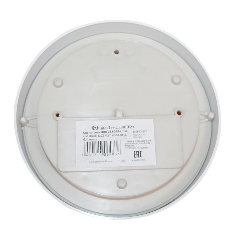 Светильник "Банник" 1302 НПП 03-60-014 IP54 круг малый с решеткой бел. пласт. ГИ Элетех 1005500882