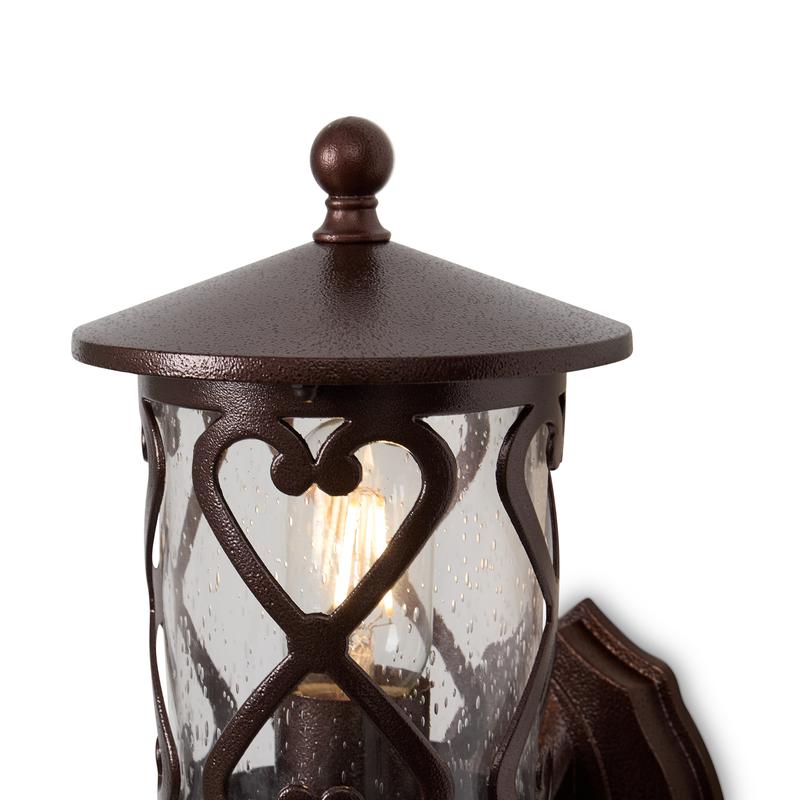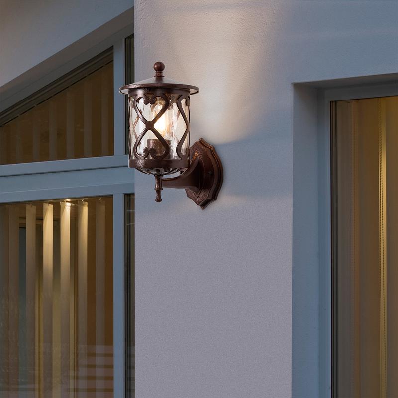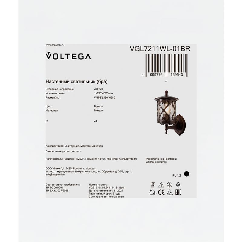 Светильник настенный (бра) Mifi 1х40Вт Е27 IP44 Voltega VGL7211WL-01BR — настенное решение с ярким светом и стильным дизайном. Этот светильник станет отличным дополнением к любому фасаду, создавая уютную и тёплую атмосферу.