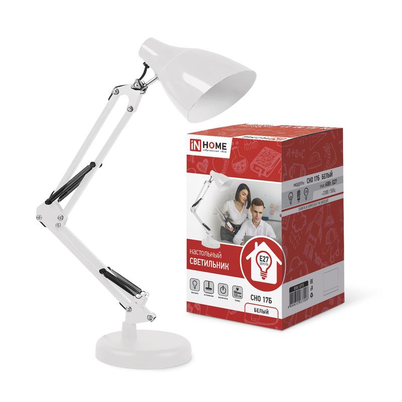 Светильник настольный под лампу СНО 17Б на основании 60Вт E27 230В бел. (коробка) IN HOME 4690612037226