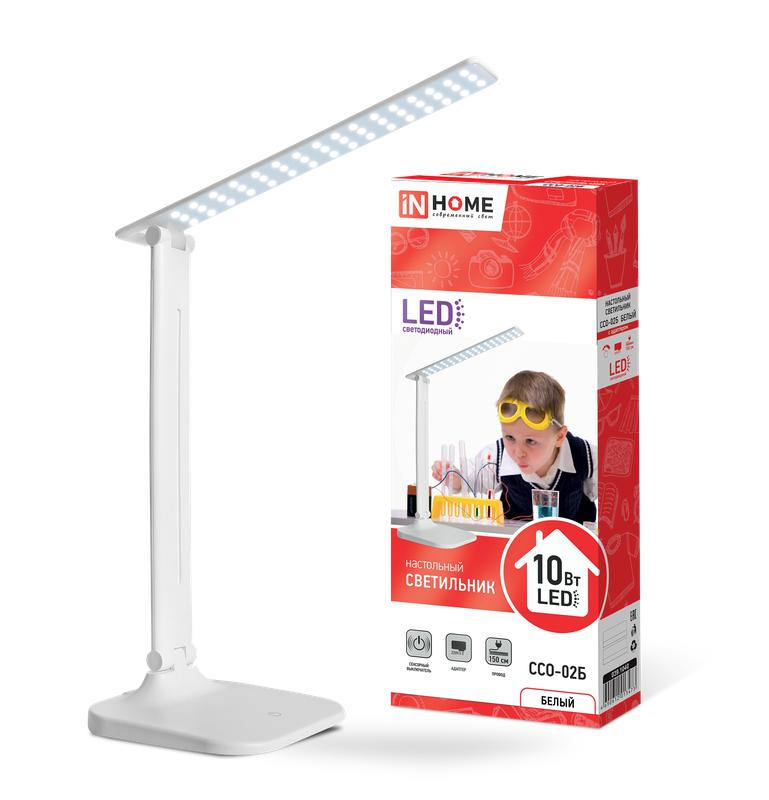 Светильник настольный светодиодный ССО 02Б 10Вт 4000К 625лм сенсор-диммер адаптер бел. IN HOME 4690612013473 -