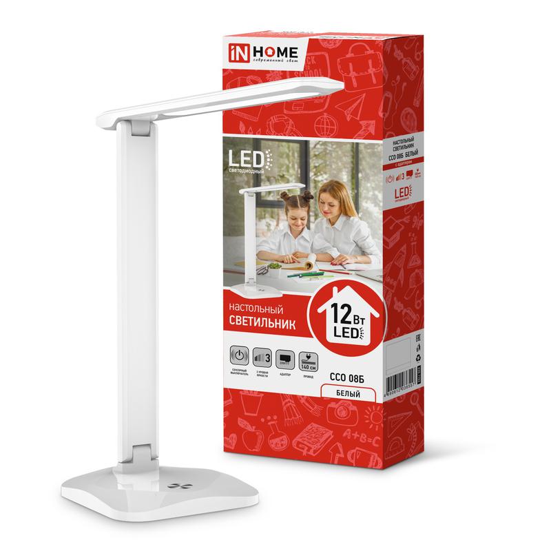 Светильник настольный светодиодный ССО 08Б 12Вт 3000-6500К 600лм сенсор-диммер с адаптером бел. IN HOME 4690612036557