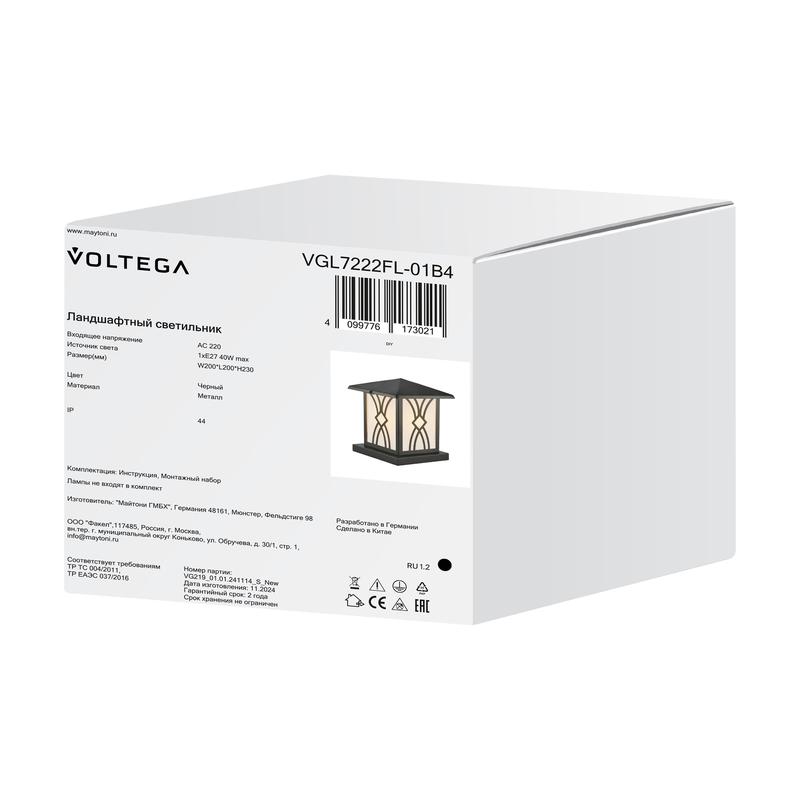 Светильник Nef 1х40Вт E27 IP44 ландшафтный Voltega VGL7222FL-01B4