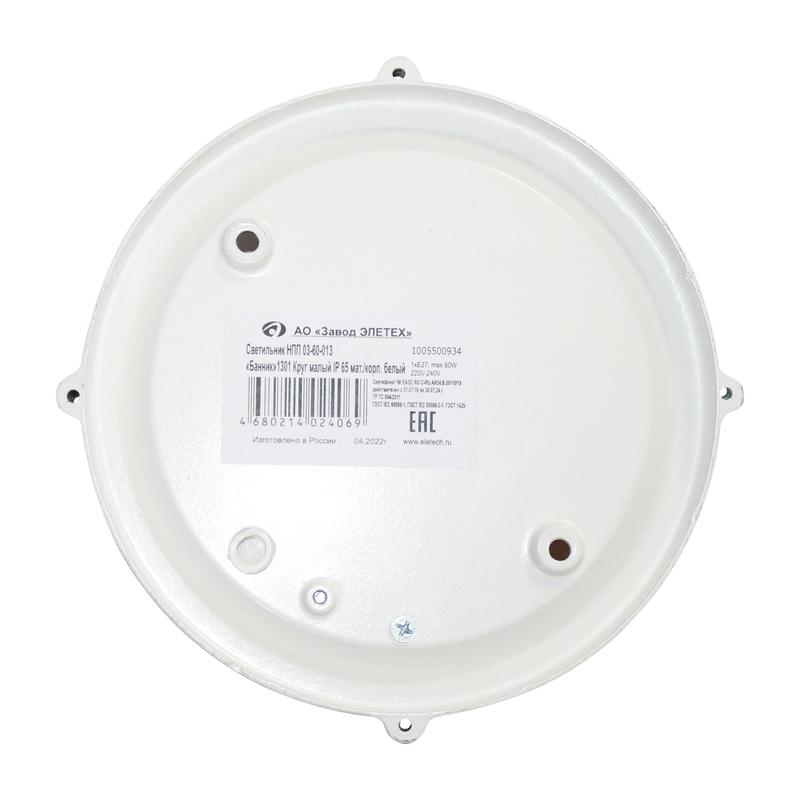 Светильник НПП 03-60-013 "Банник" 1301 круг малый 1х60Вт E27 IP65 корпус бел. Элетех 1005500934