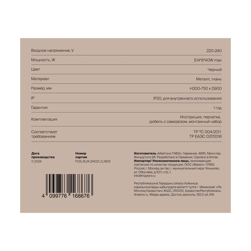 | Материал плафона / рассеивателя | Ткань |