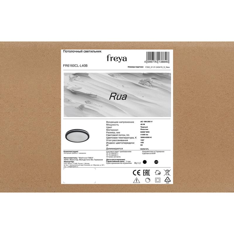Светильник потолочный Rua 40Вт IP 65 Freya FR6160CL-L40B — потолочное решение, предназначенное для использования в помещениях с повышенной влажностью. Благодаря своей мощности и универсальному дизайну, светильник подходит для различных интерьеров, обеспечивая яркое и равномерное освещение.