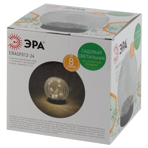 Светильник садовый ERASF012-24 Шар на солнечной батарее 15 LED 15см Эра Б0044232