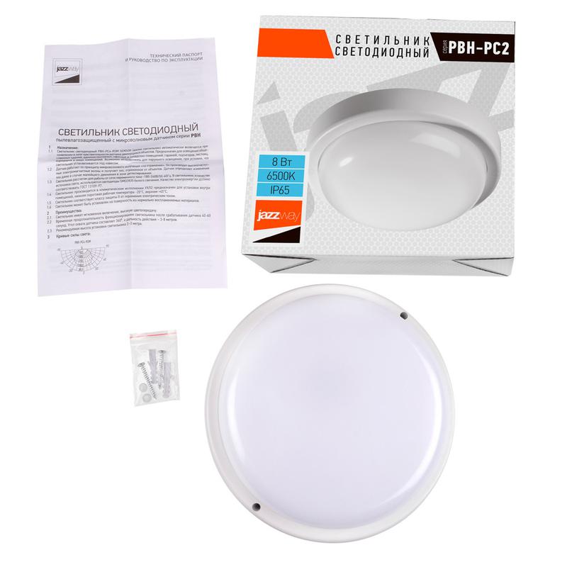 Светильник светодиодный "Банник" PBH-PC2-RA 8Вт 6500К IP65 ЖКХ ДБП кругл. пылевлагозащ. бел. JazzWay 5032262