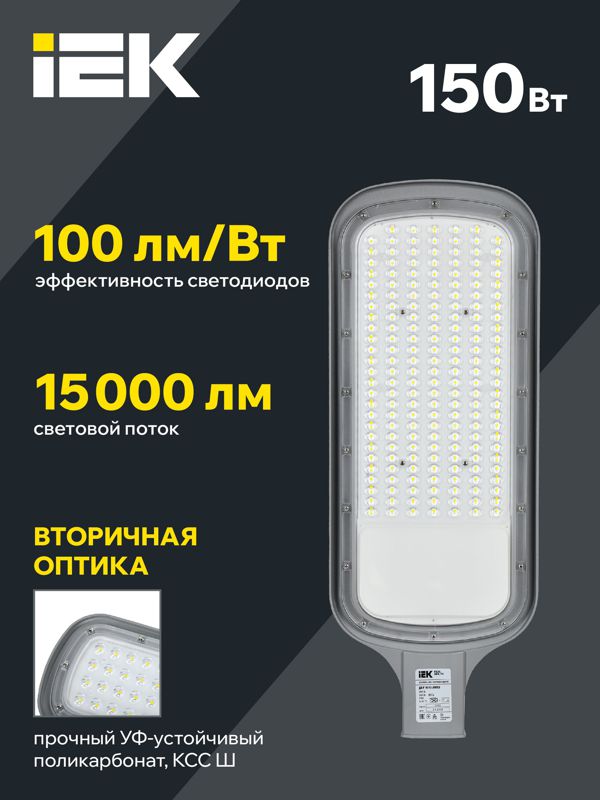 Светильник светодиодный ДКУ 1012-150Ш 5000К IP65 сер. IEK LDKU1-1012-150-5000-K03