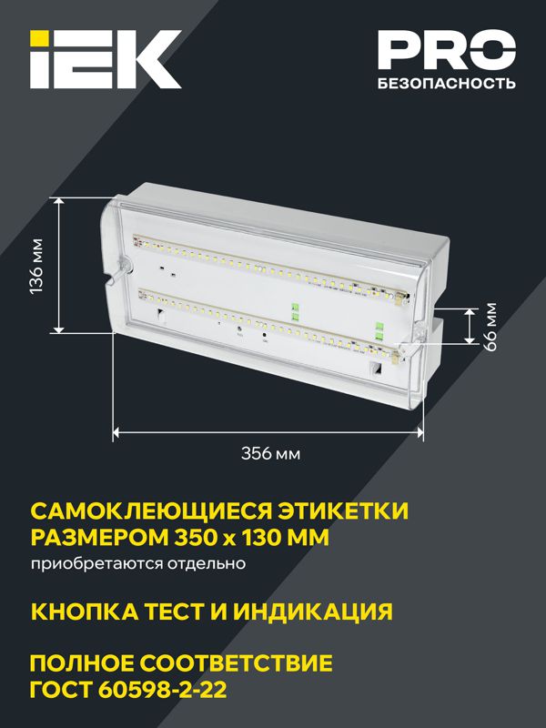 Светильник светодиодный ДПА 5042-3 IP65 3ч аварийный аккум. универс. подкл. IEK LDPA0-5042-3-65-K01