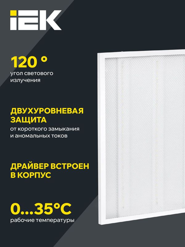 Светильник светодиодный ДВО 6571-P 45Вт 4000К 595х595х20 универс. рассеив. призма с драйвером панель IEK LDVO2-6571-45-4000-K01