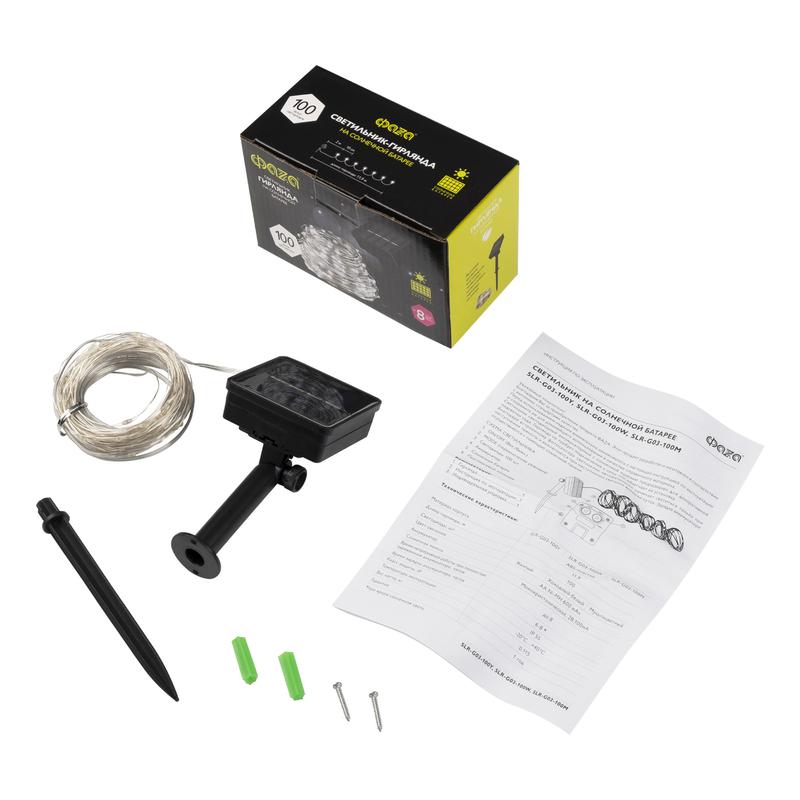 Светильник светодиодный садовый SLR-G03-100W нить 100LED холод. бел. на солнечн. батарее ФАZА 5033313