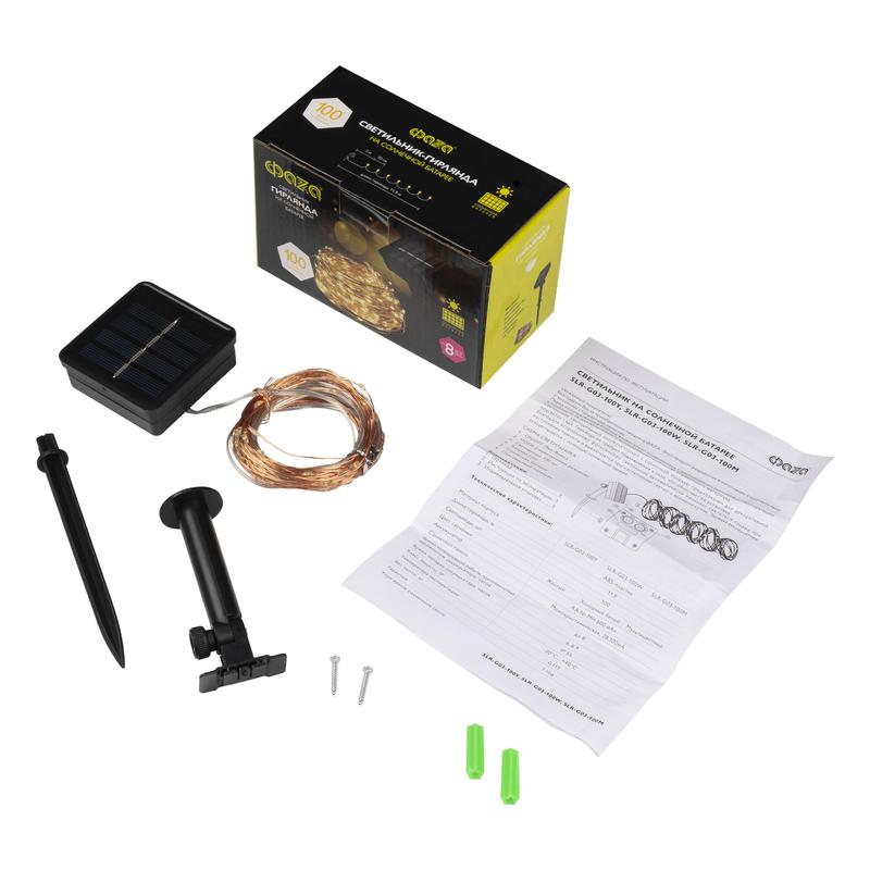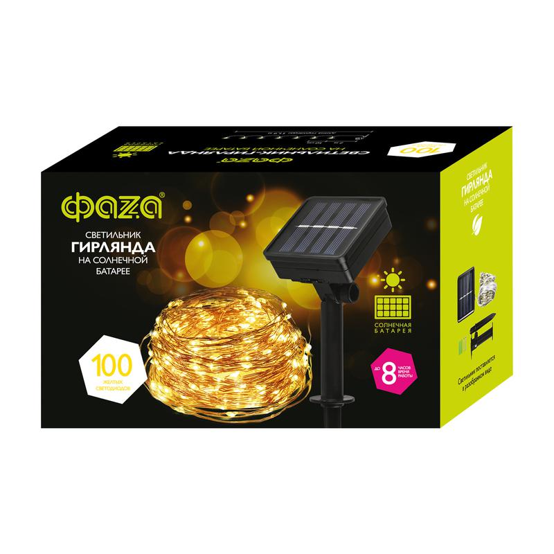 Светильник светодиодный садовый SLR-G03-100Y нить 100LED желт. на солнечн. батарее ФАZА 5033320